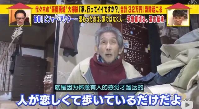 老人应该是很渴望能有人陪伴的吧。因为垃圾清理完之后,老人邀请工作人员再住一晚......