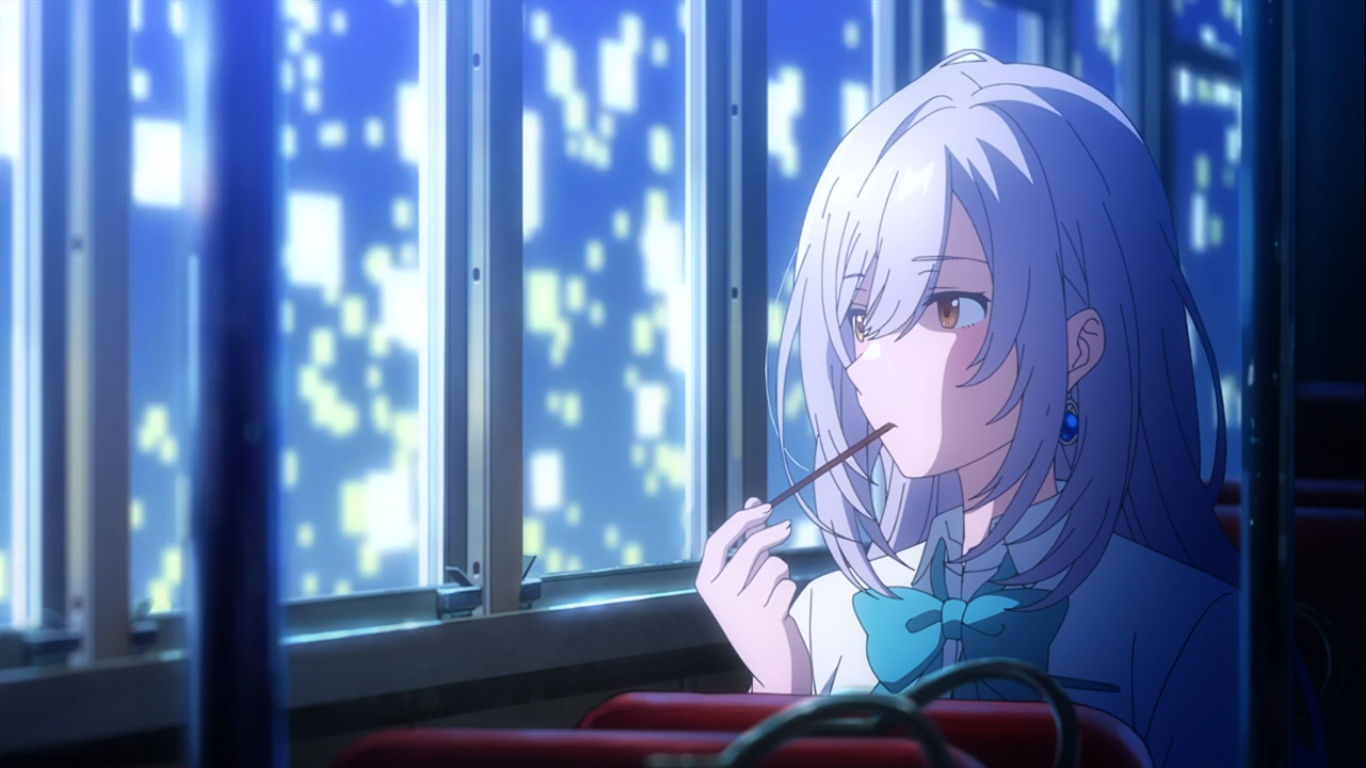前者和女主角瞳美息息相关。眼睛看不到色彩,也正对应了她将自己封闭在自我世界,不与他人来往的内心。而让她走出过去的阴影,开始做出改变的契机,毫无疑问是本作中其他几位主要角色。